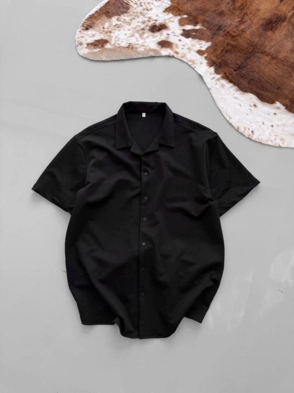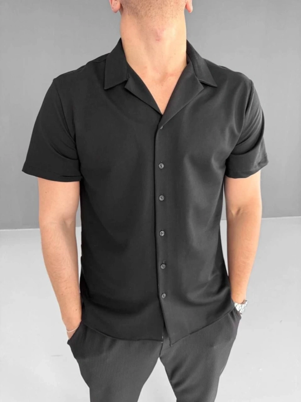 Erkek İki İplik Kumaş Dijital Baskılı Gömlek iyah