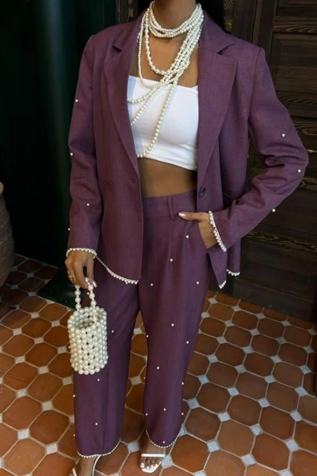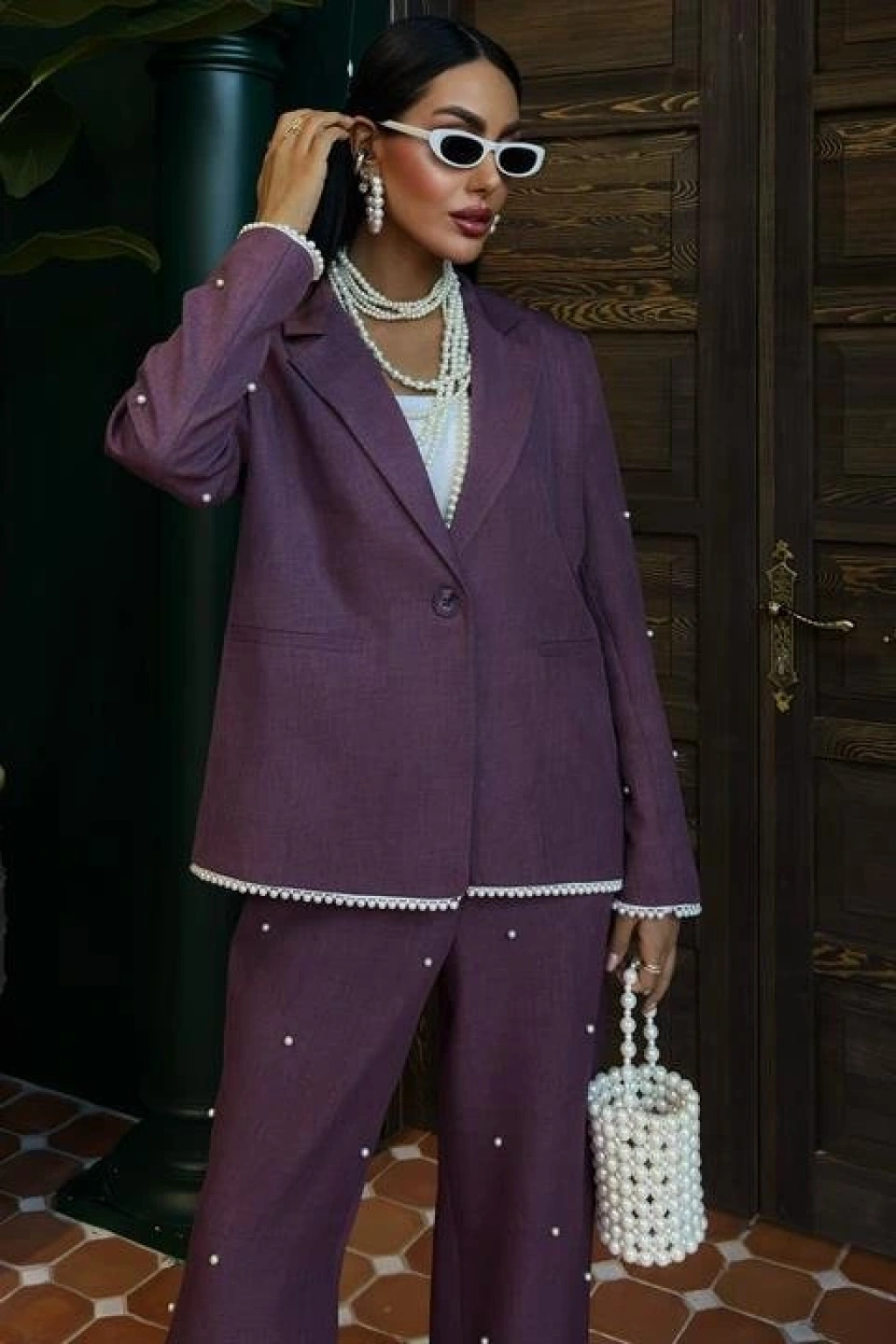 İnci Detaylı Ceket Pantolon Keten Takım 10124