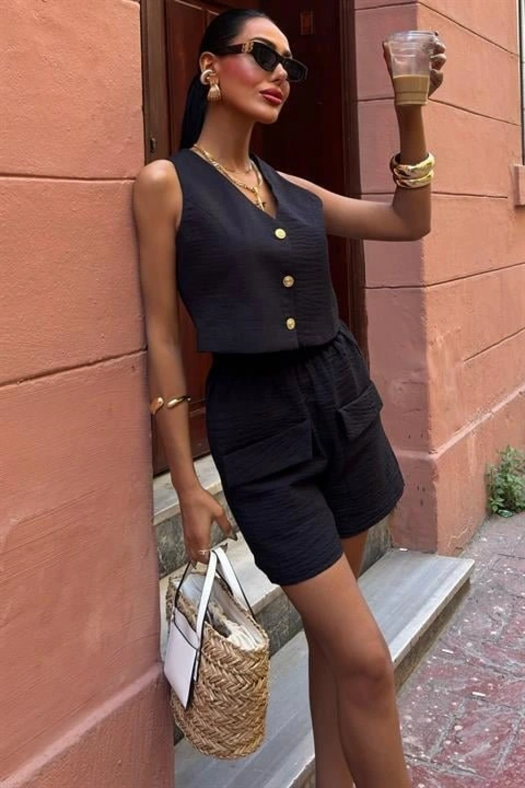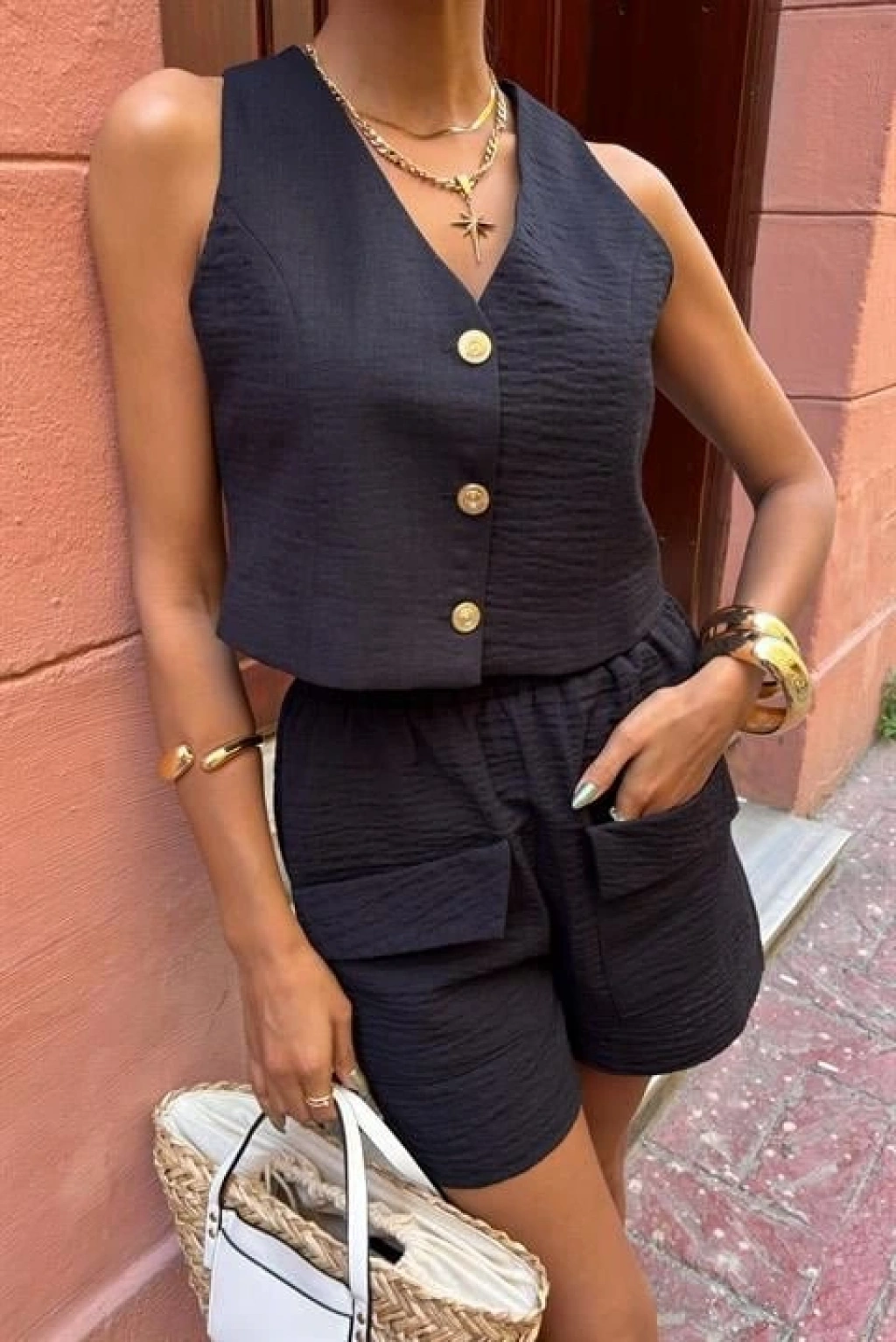 Mini Yelekli Şortlu Keten Takım 10176-08