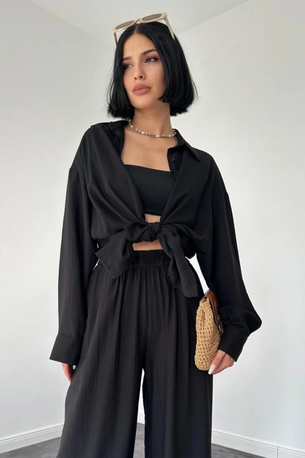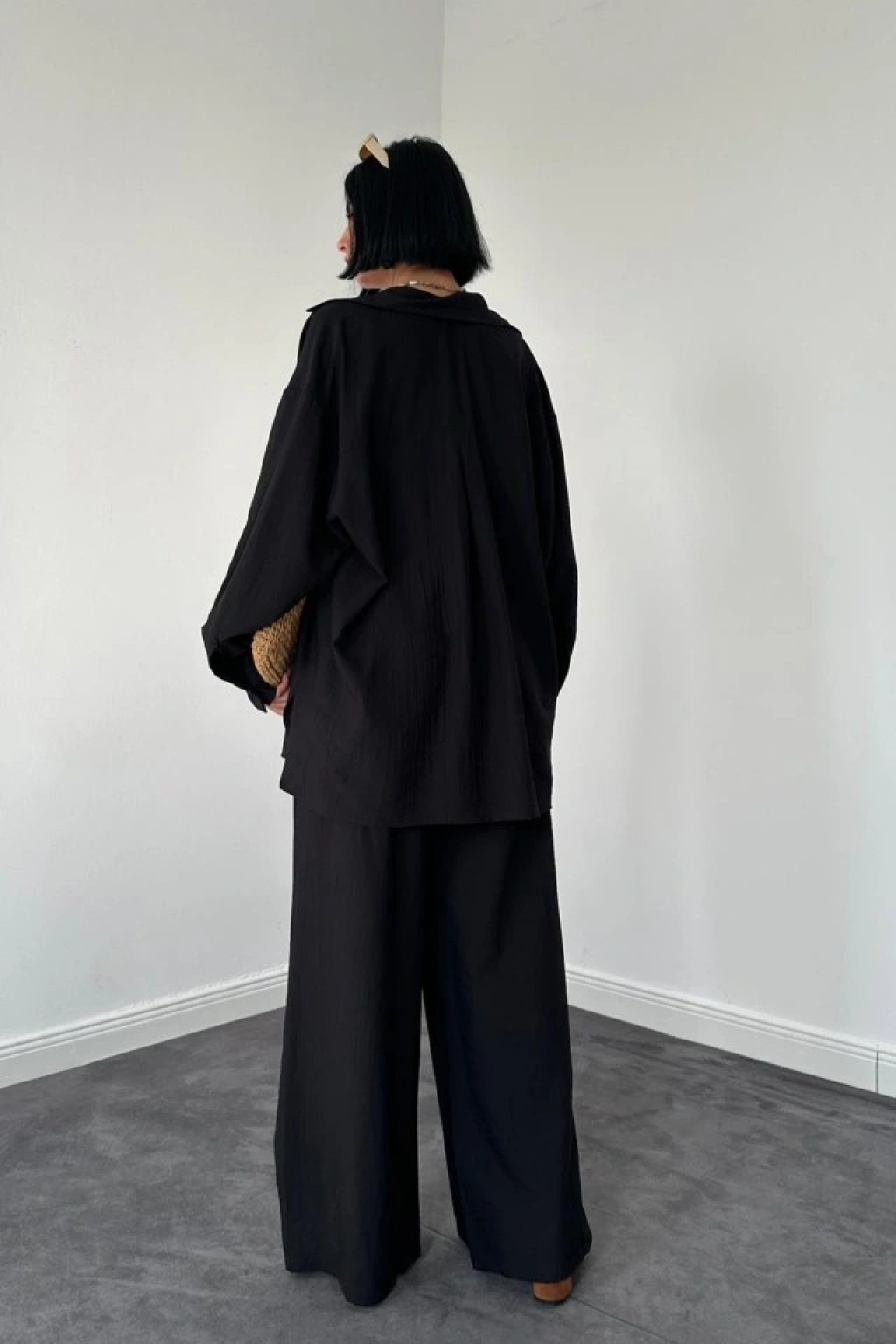Siyah Alice Gömlek Ve Bol Kesim Pantolon Takım