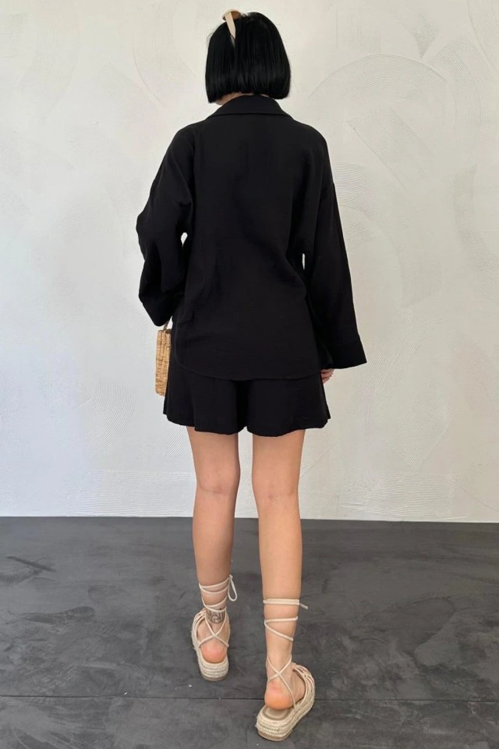 Siyah Gömlek Ve Müslin Şort Takım