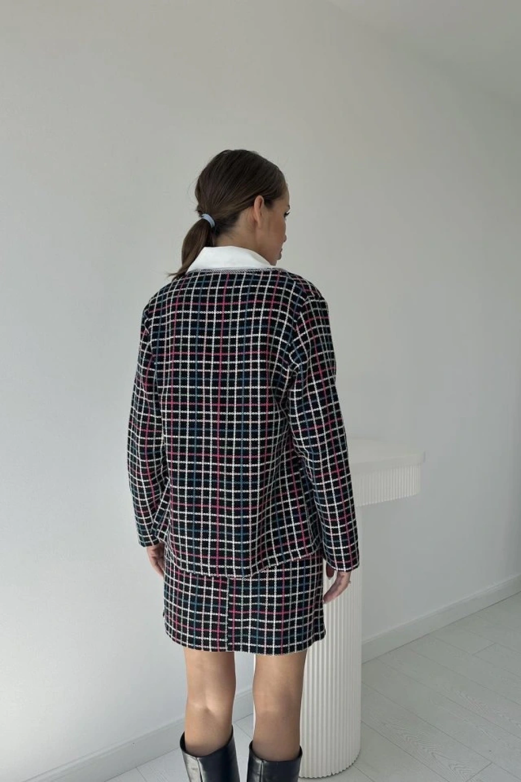 Siyah Önü Açık Ceket Ve Eteği Zincirli Takım