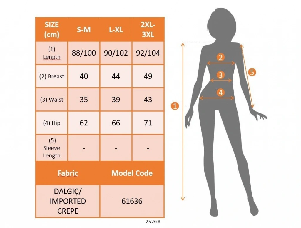 Modelin Ölçüleri: Boy:165, Kg:55, Göğüs:90, Bel:72, Kalça: 100