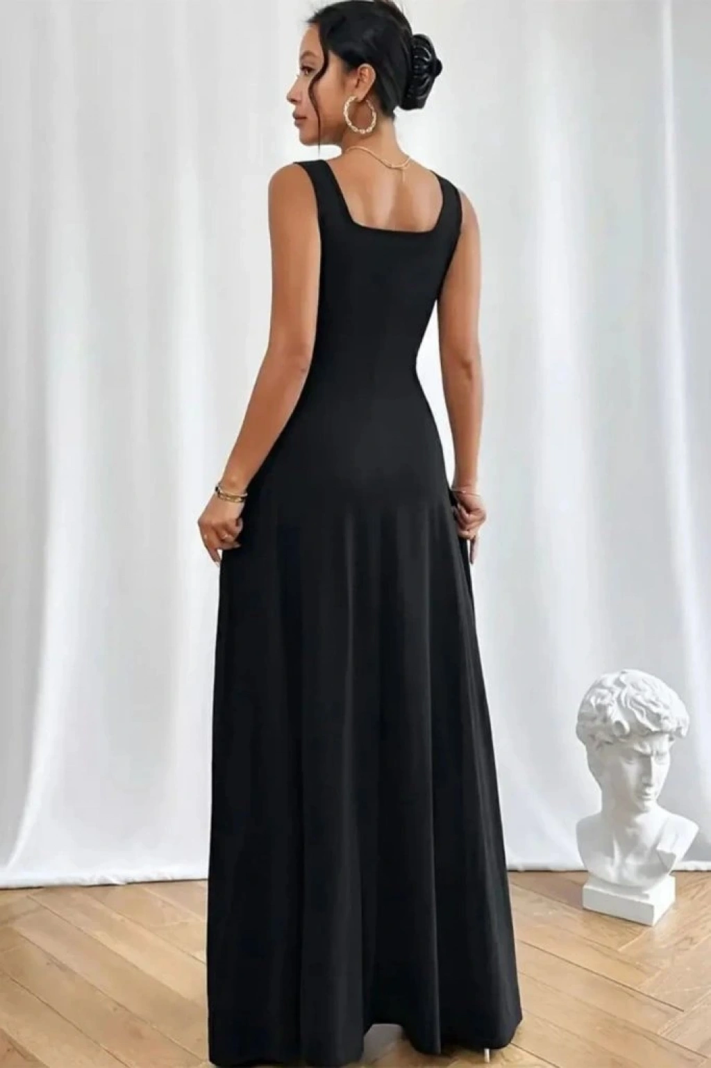 Kadın Askılı U Yaka Janjan Krep Elbise