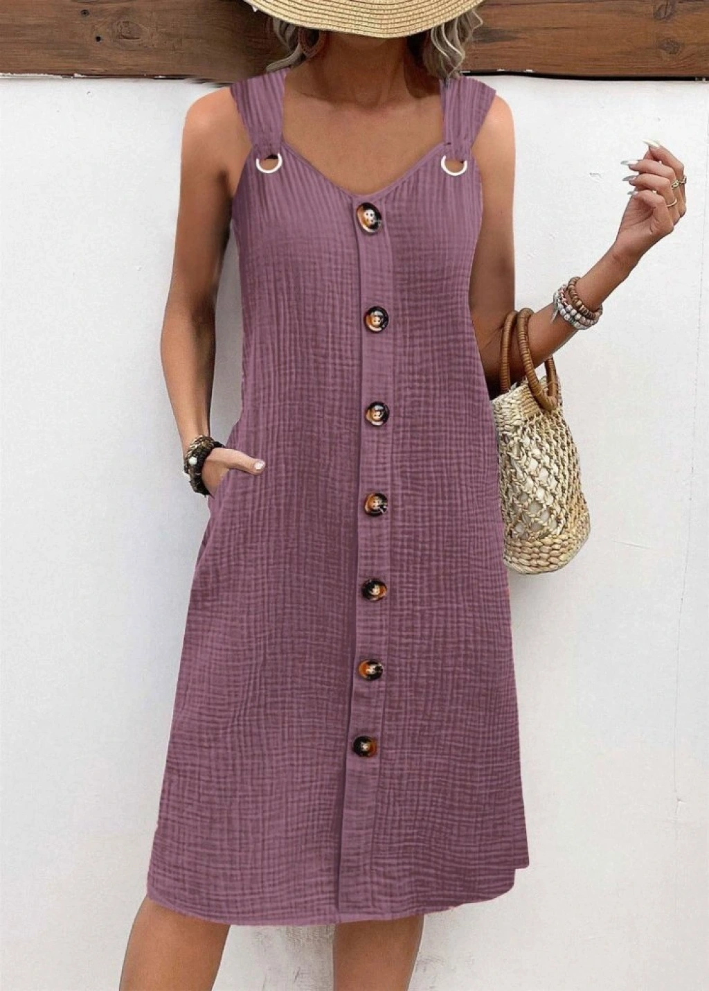 Kadın Askılı V Yakalı önden Düğmeli Narin Elbise