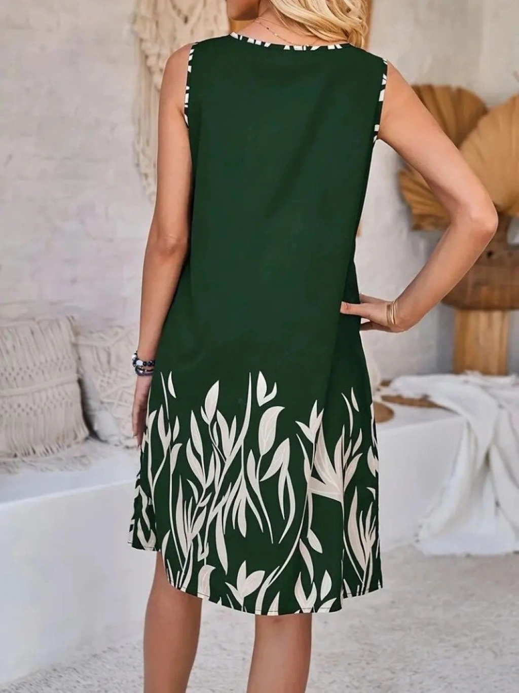 Kadın Askılı Yuvarlak Yakalı Yaprak Desenli Dalgıç Elbise