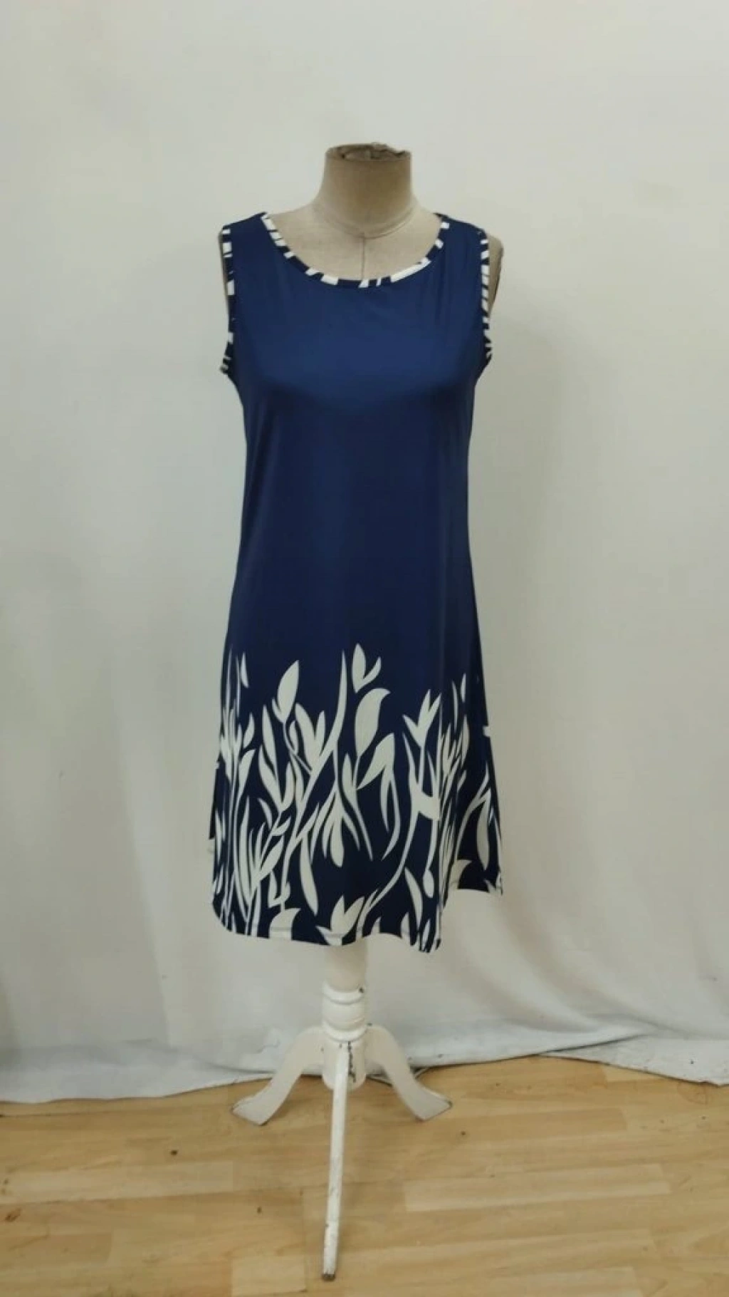 Kadın Askılı Yuvarlak Yakalı Yaprak Desenli Dalgıç Elbise