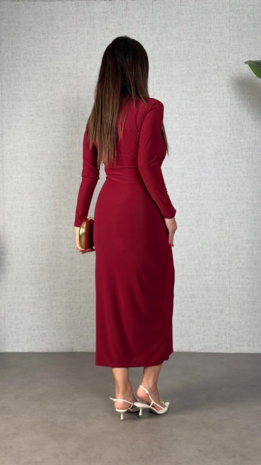 Kadın Balıkçı Yaka Toka Detay Sandy Kumaş Midi Boy Elbise