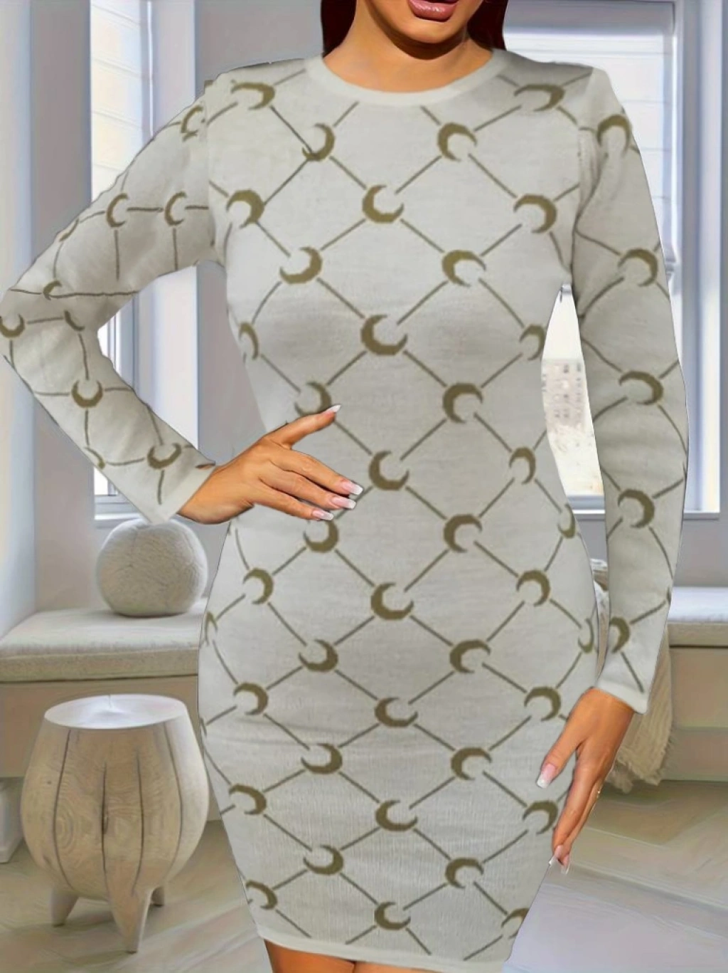 Kadın Bisiklet Yaka Uzun Kol Triko Mini Boy Elbise