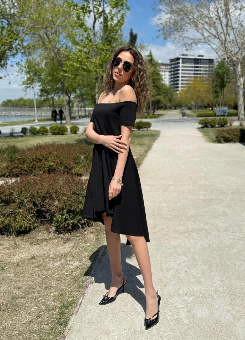Kadın Kısa Kollu Madonna Yaka önü Kısa Arkası Uzun Ithal Krep Elbise
