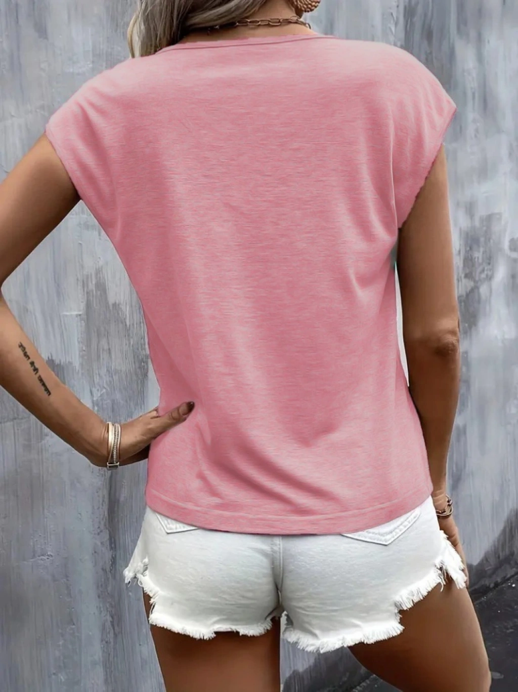 Kadın Kısa Kollu V Yakalı Kalp Baskılı Viskon Bluz