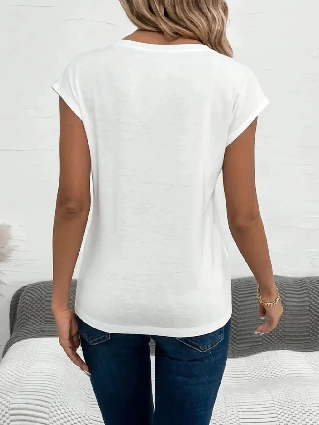 Kadın Kısa Kollu V Yakalı Kalp Desen Viskon Bluz