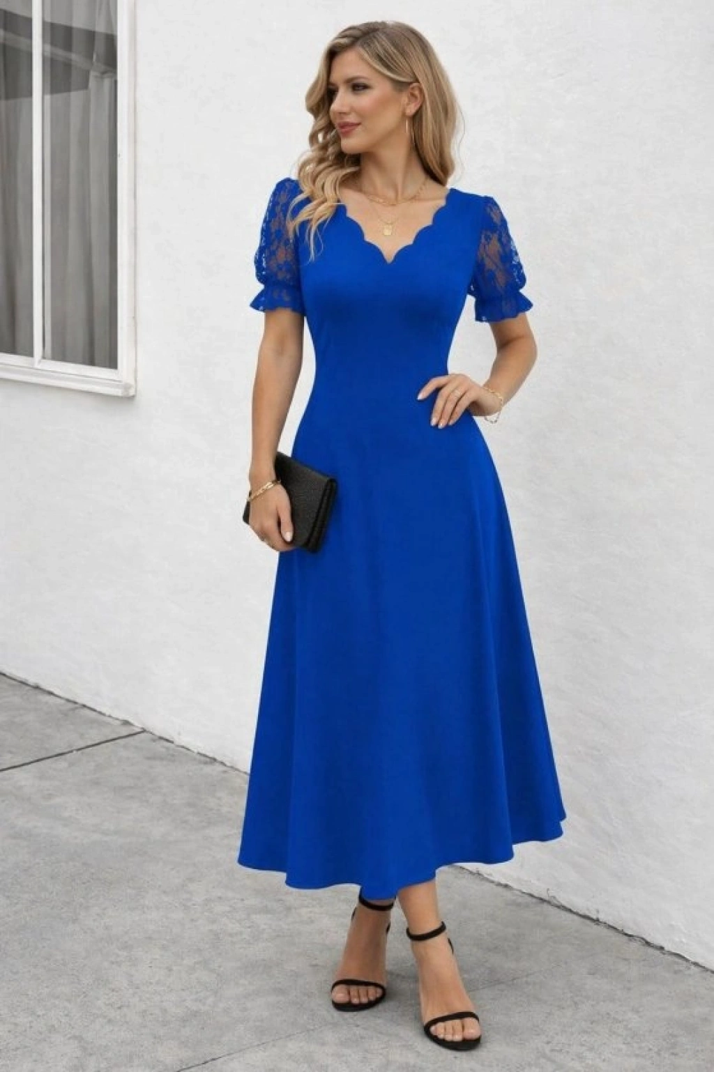 Kadın Kısa Kollu V Yakalı Uzun Janjan Elbise