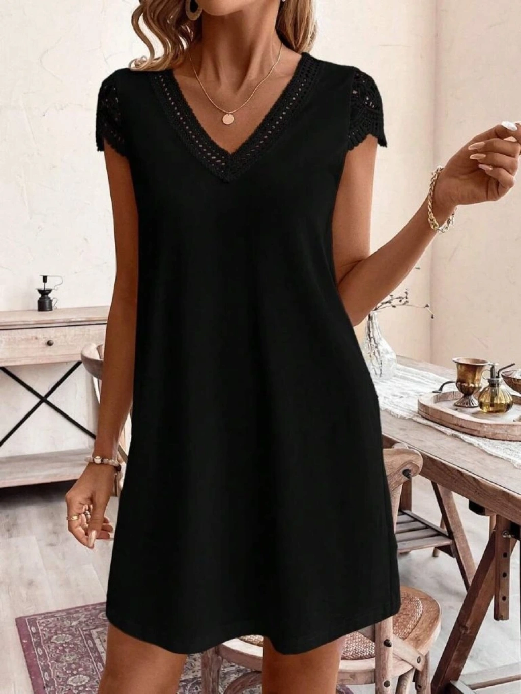 Kadın Kısa Kollu V Yakalı Viskon Elbise