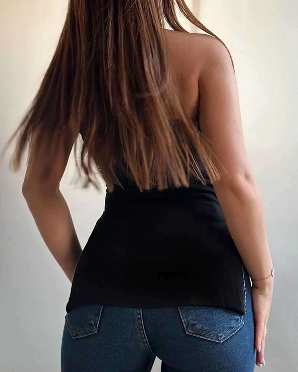 Kadın Kolsuz Iki Yanı Fermuarlı Straplez Dalgıç Bluz