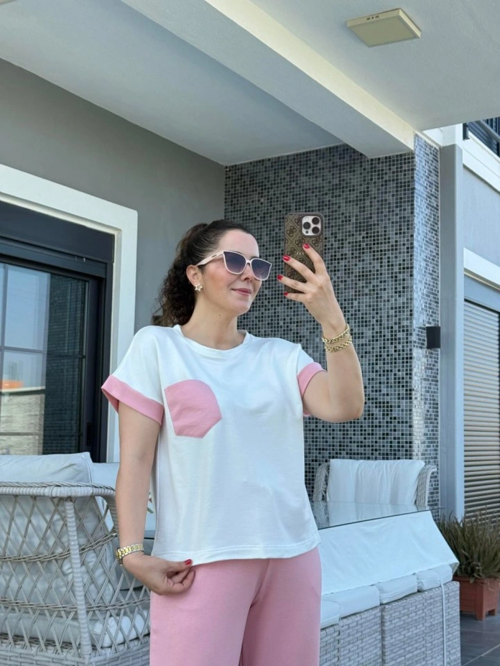 Kadın Kristal Kumaş Garnili Cep Detaylı Ikili Takım
