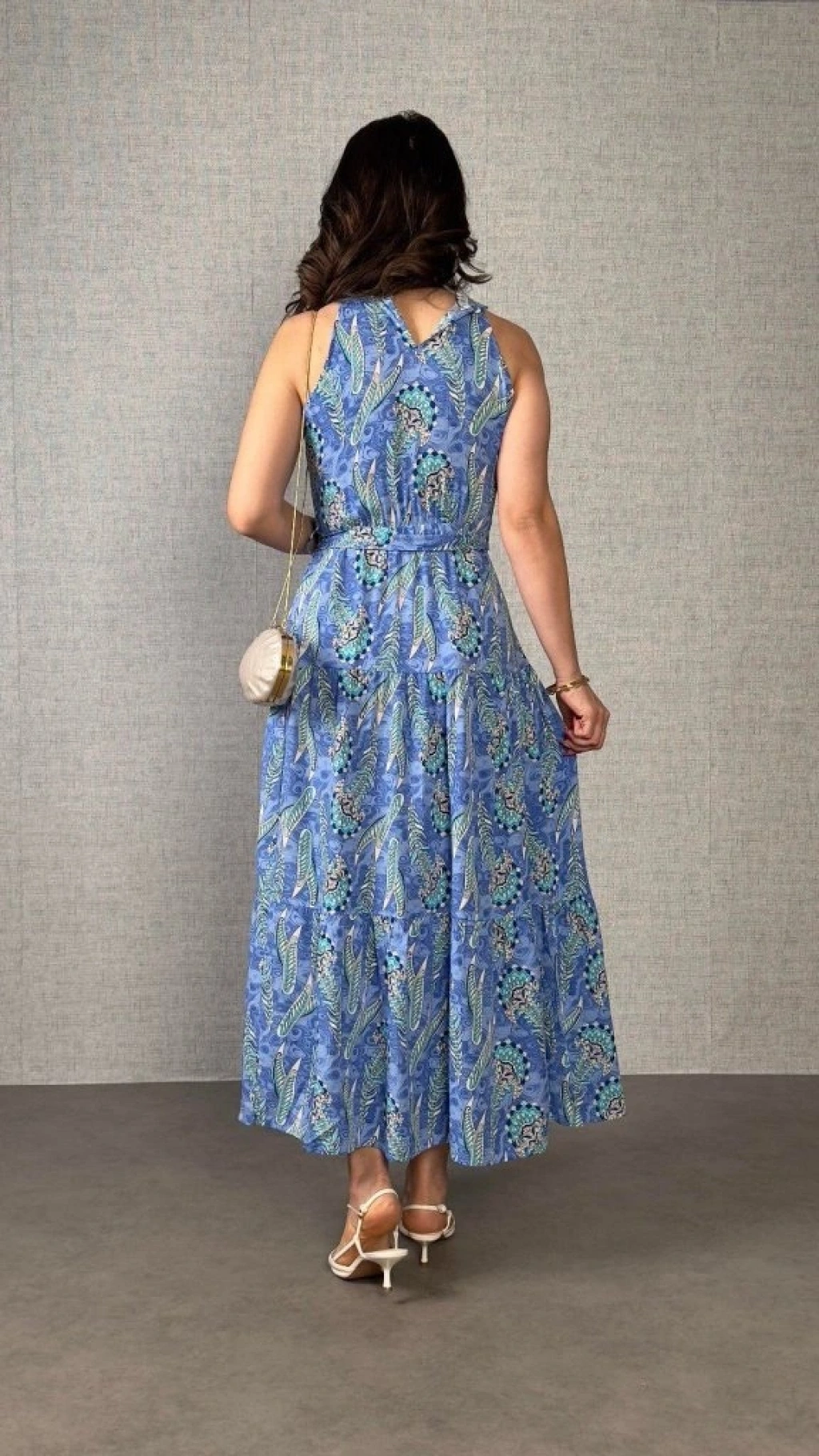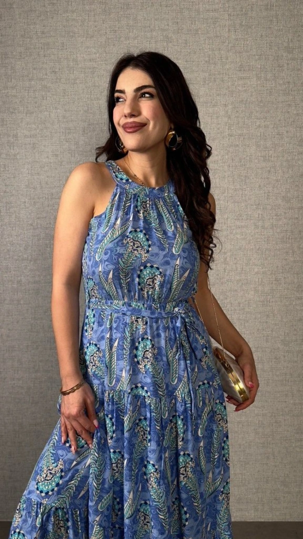 Kadın Omuzlardan Açık Boyundan Geçmeli Desenli Süprem Bluz