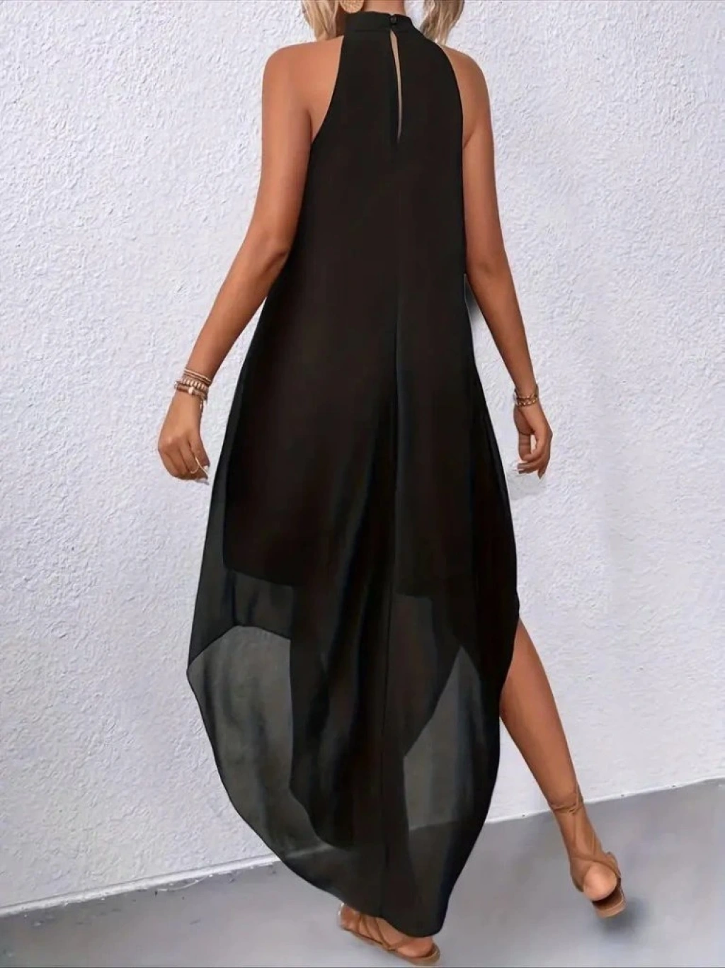 Kadın Omuzlardan Açık Daire Yakalı Astarlı şifon Elbise