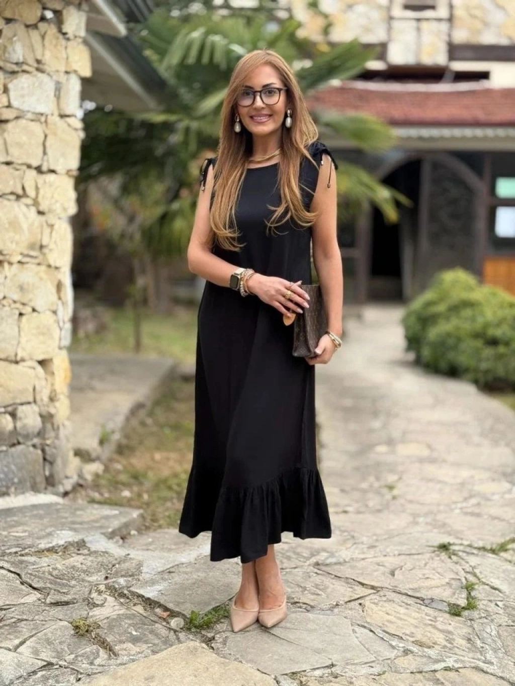Kadın Omuzlardan Büzgülü Kayık Yaka Fırfırlı Janjan Krep Elbise