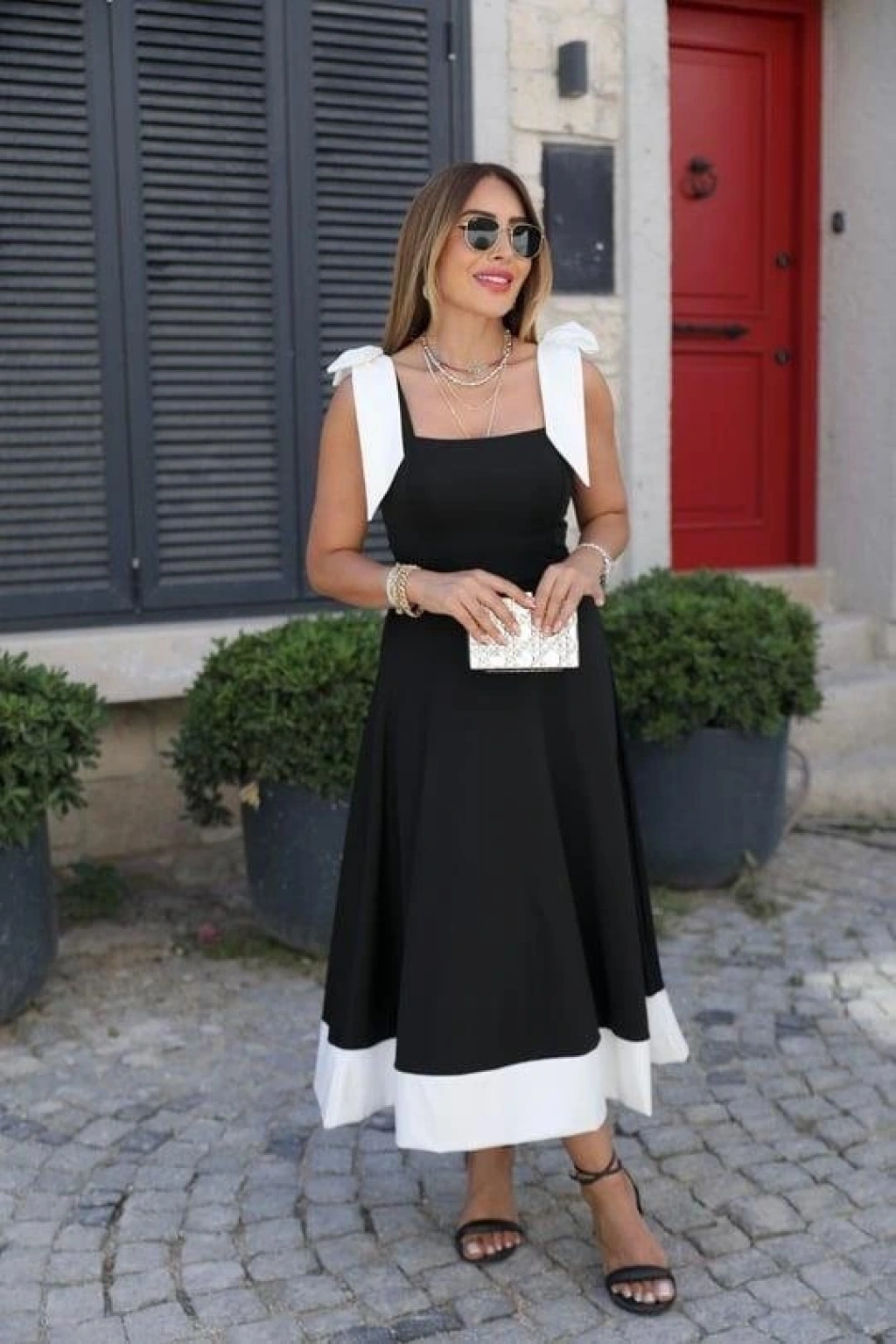 Kadın Omuzlardan Kurdela Askılı çift Renkli Kiloş Ithal Krep Elbise