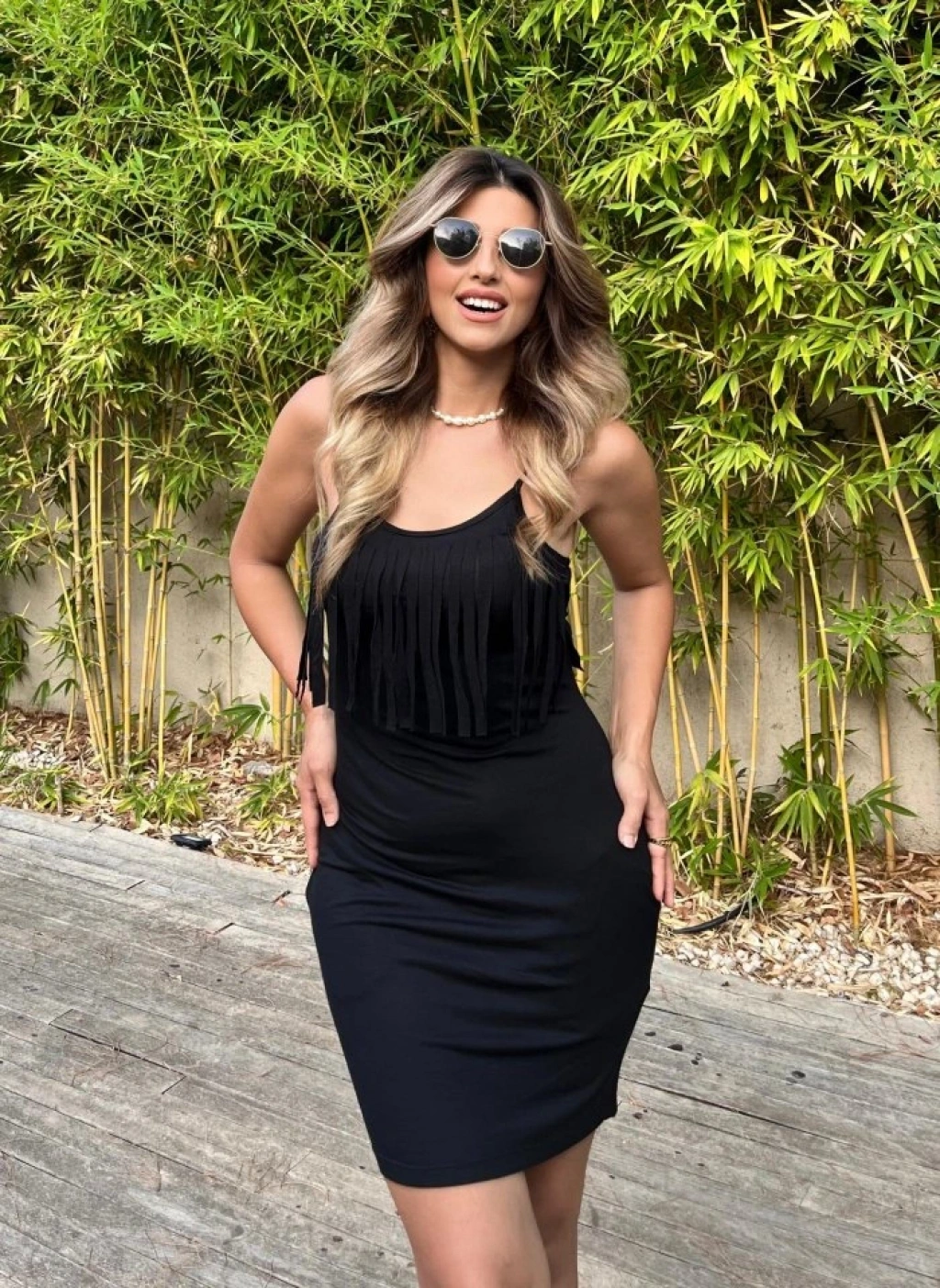 Kadın Sıfır Kol önü Püsküllü Askılı Viskon Mini Elbise