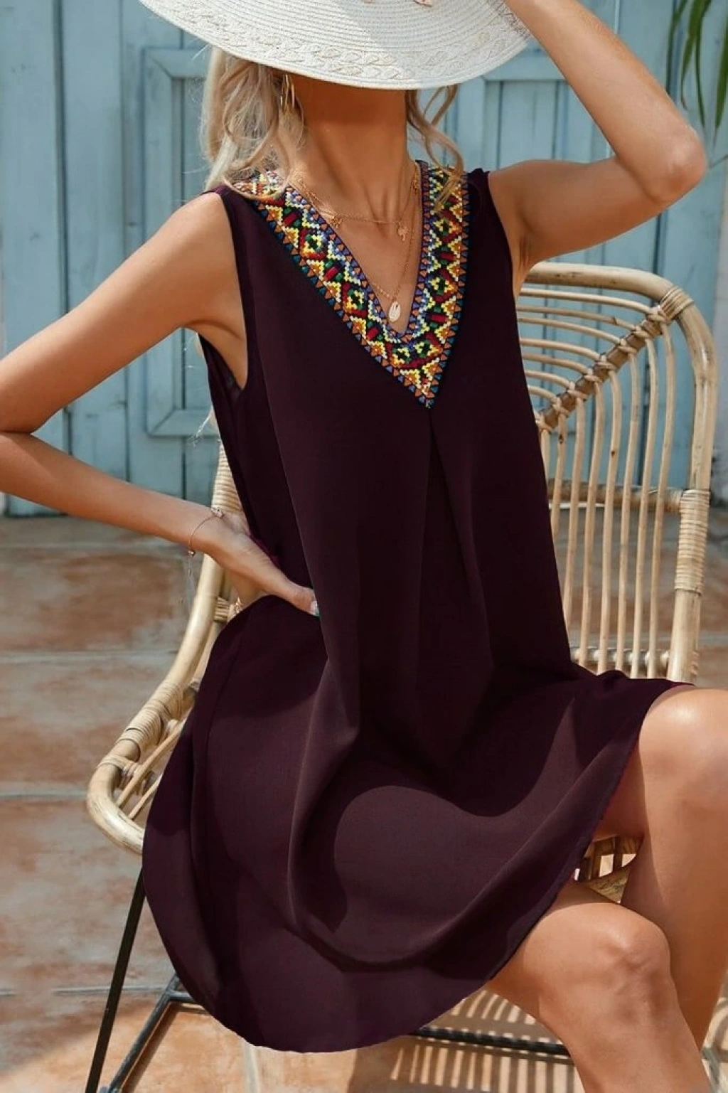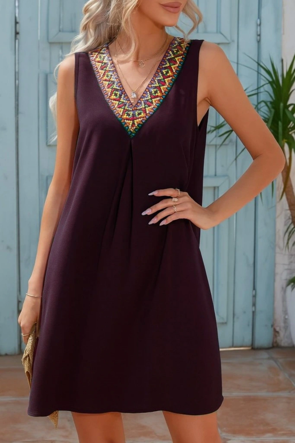 Kadın Sıfır Kol şerit Detaylı V Yaka Viskon Elbise