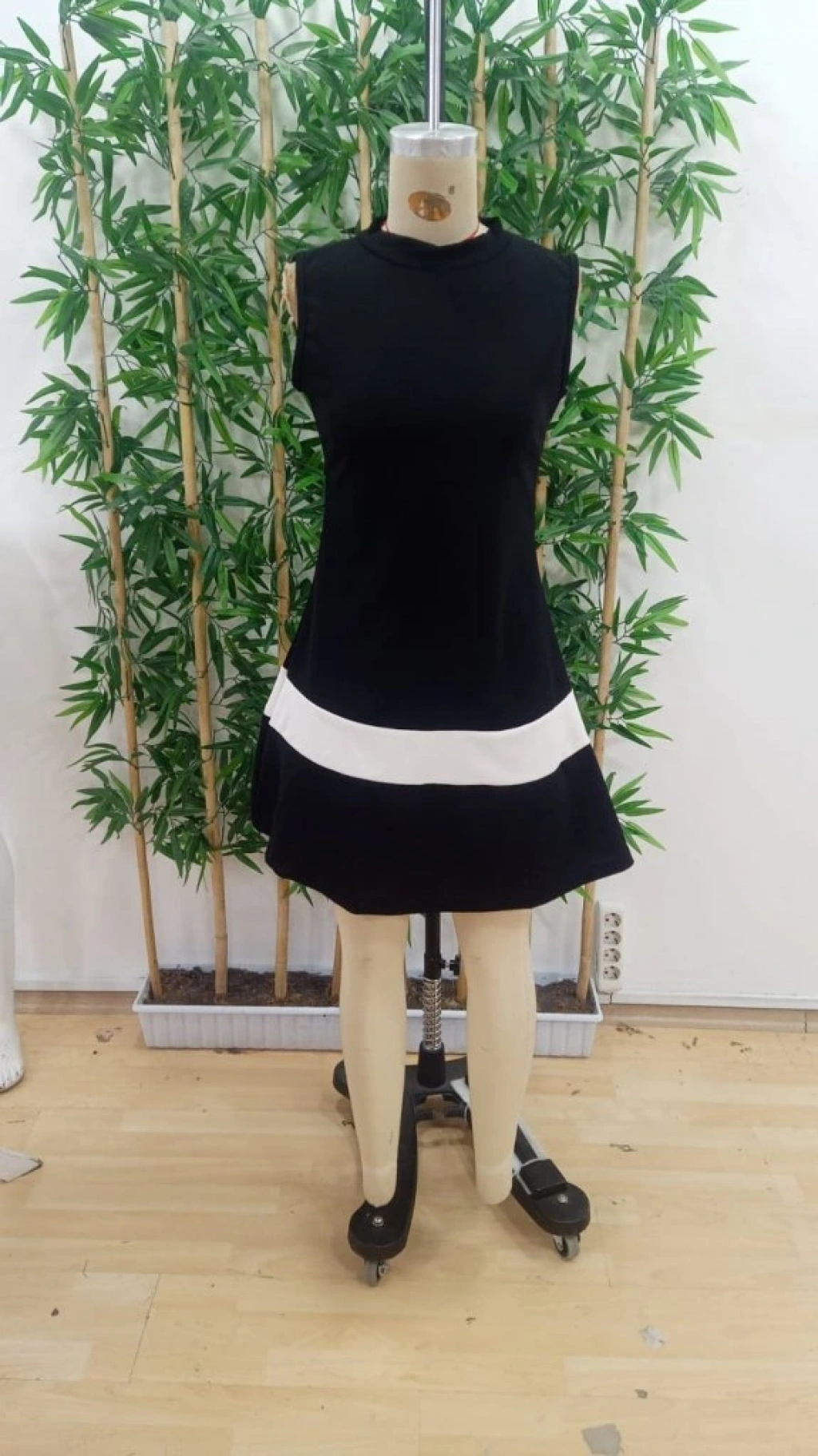 Kadın Sıfır Kol Yarı Balıkçı Yaka şerit Detaylı Ithal Krep Elbise