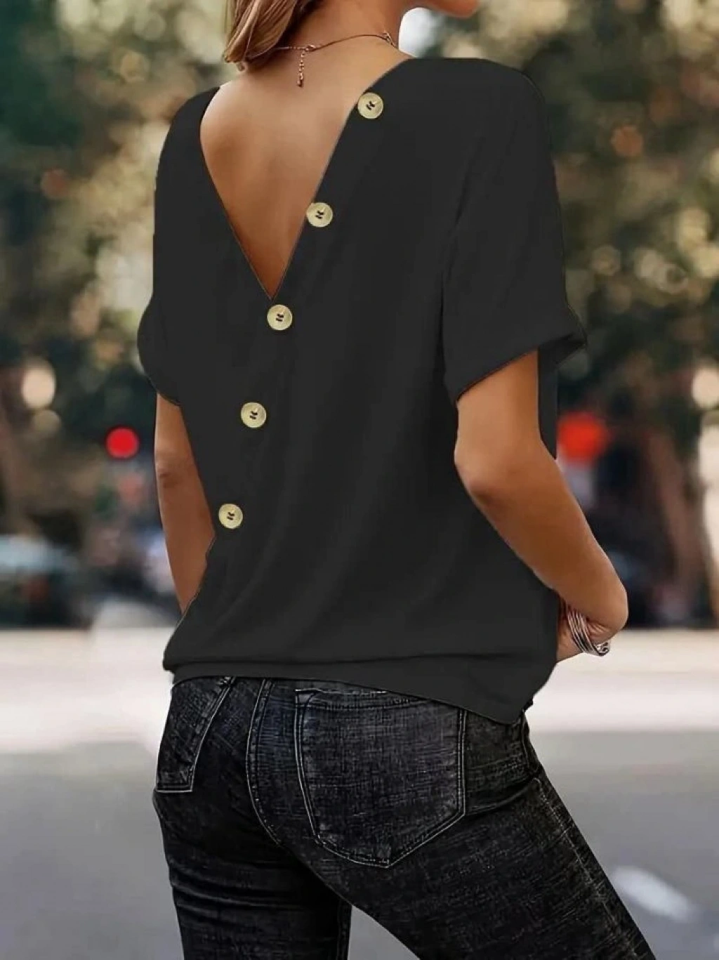 Kadın Sırt Ve Düğme Detaylı Sandy Kumaş Bluz