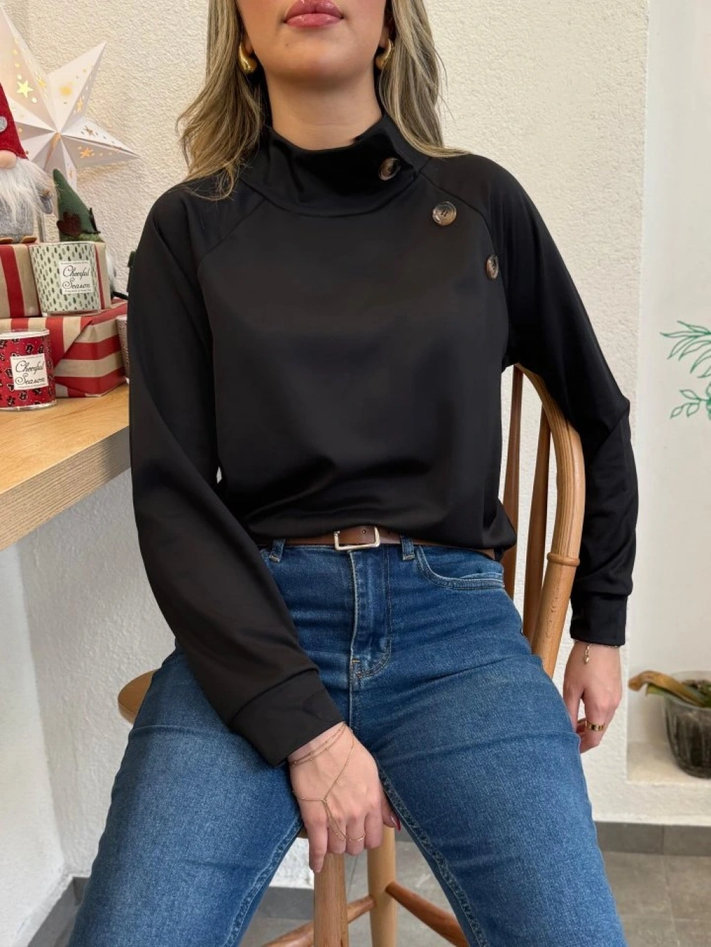 Kadın Uzun Kollu Balıkçı Yaka Düğme Detay şardonlu Dalgıç Bluz