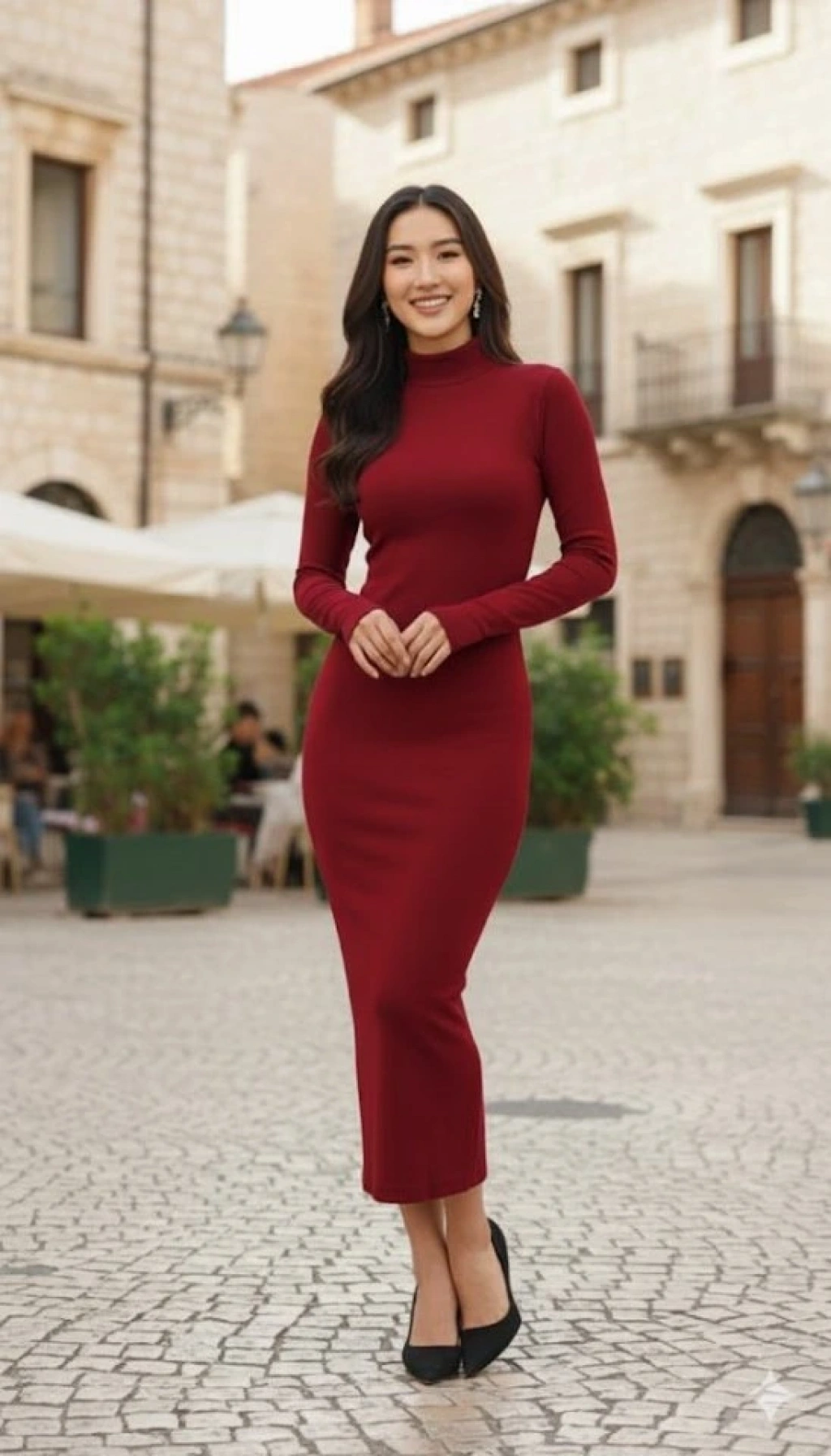 Kadın Uzun Kollu Balıkçı Yaka idi Boy Elbise