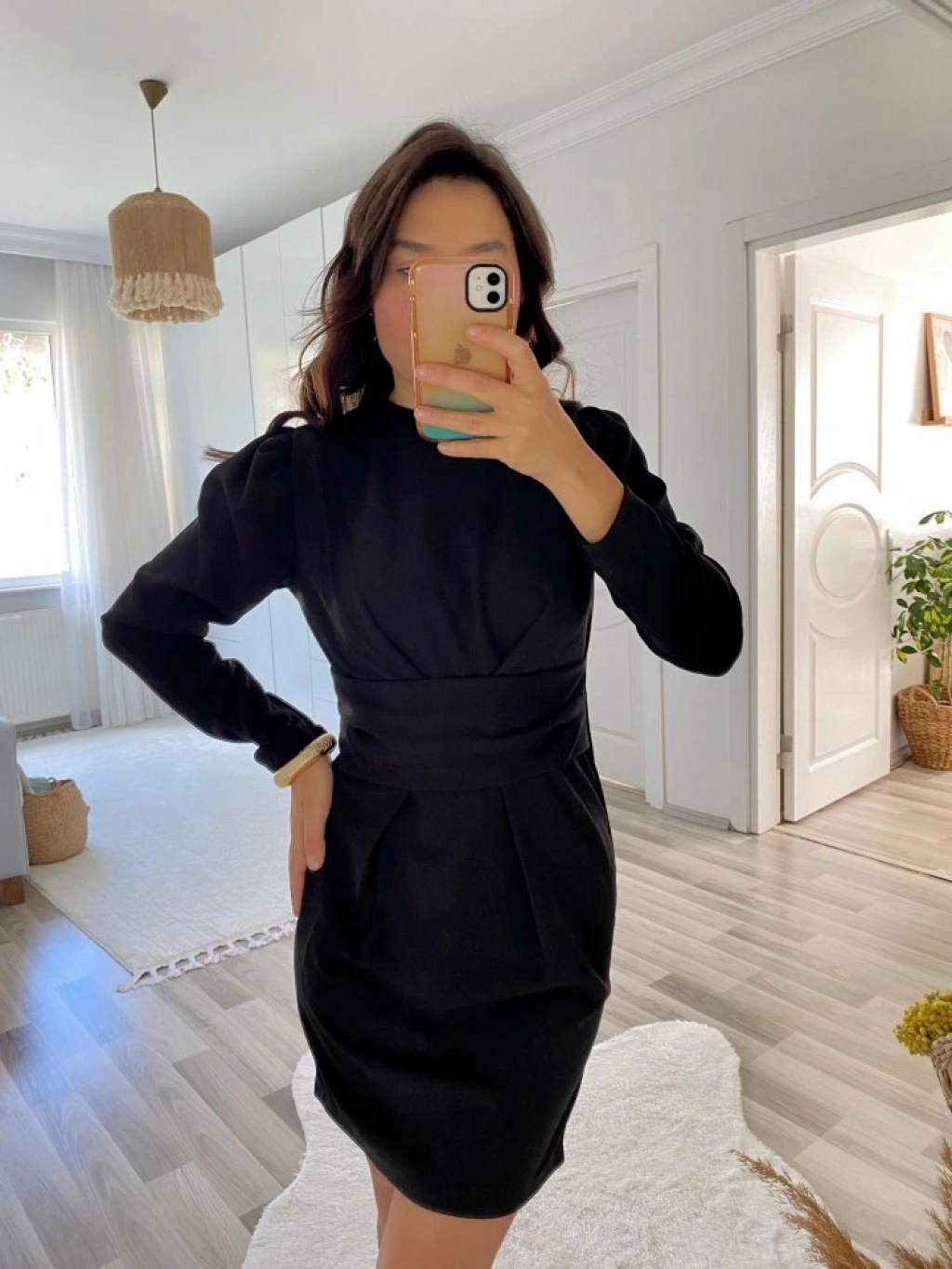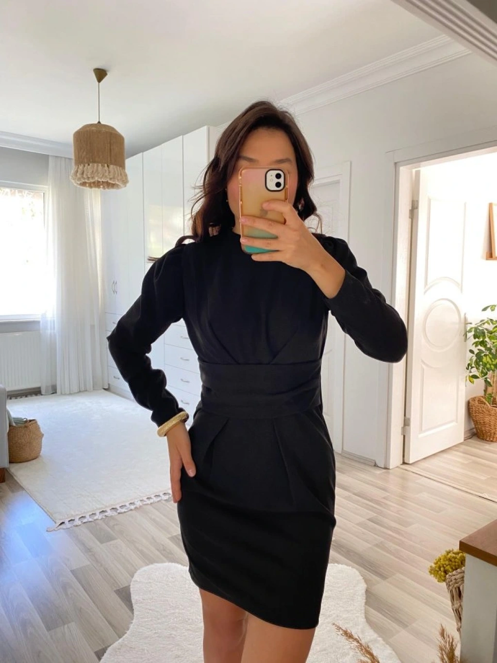 Kadın Uzun Kollu Bisiklet Yaka Bel Kemer Detay Ithal Krep Elbise