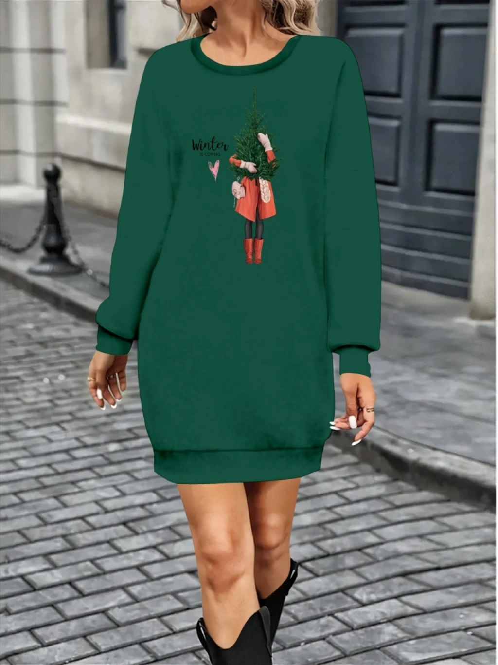 Kadın Uzun Kollu Bisiklet Yaka Desenli Kısa Viskon Iki Iplik Elbise