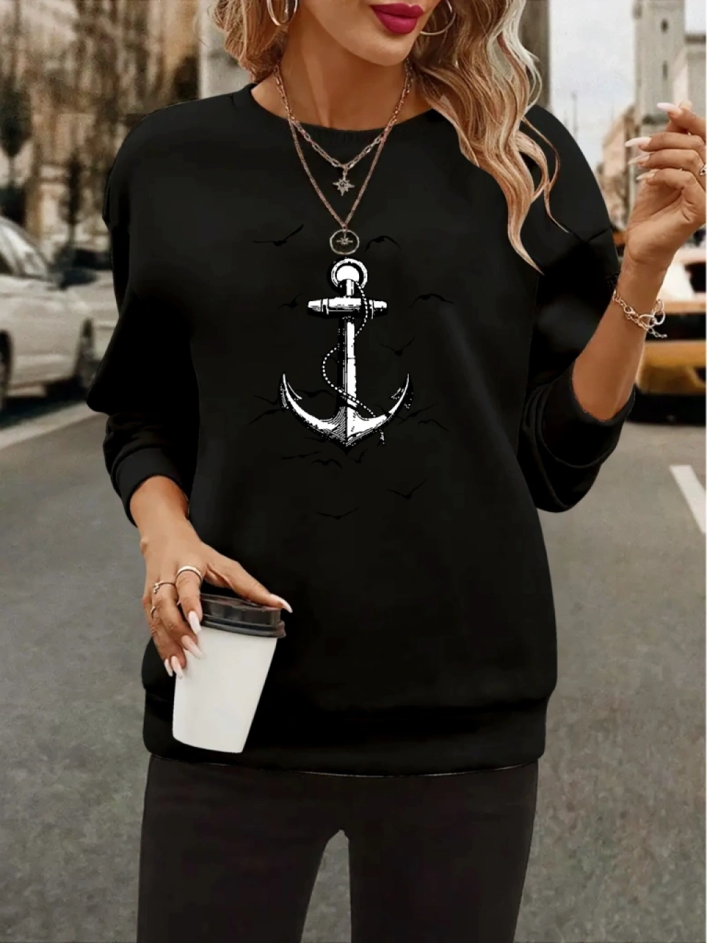 Kadın Uzun Kollu Bisiklet Yaka Desenli Viskon Iki Iplik Bluz