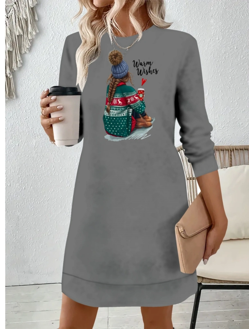 Kadın Uzun Kollu Bisiklet Yaka Desenli Viskon Iki Iplik Elbise
