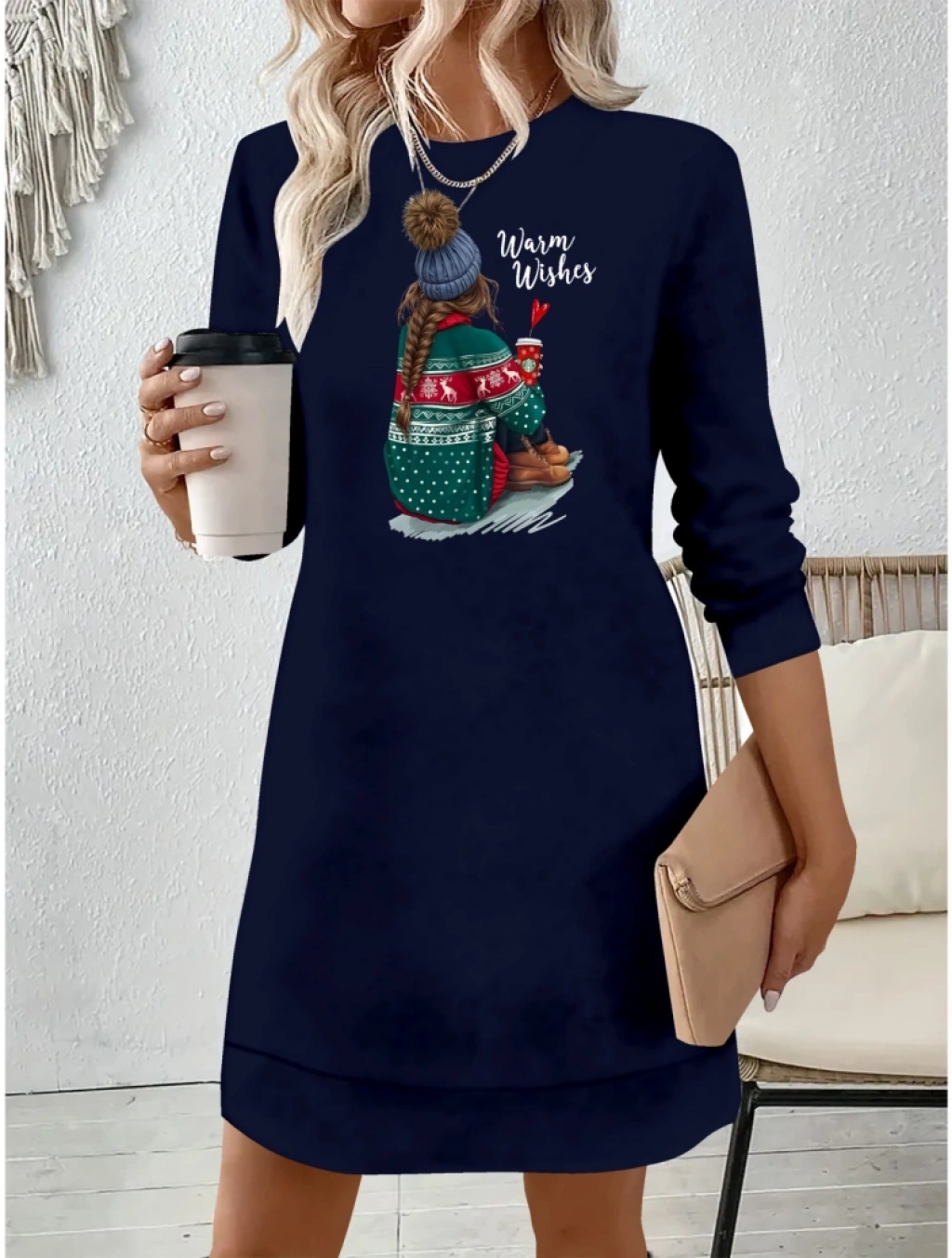 Kadın Uzun Kollu Bisiklet Yaka Desenli Viskon Iki Iplik Elbise