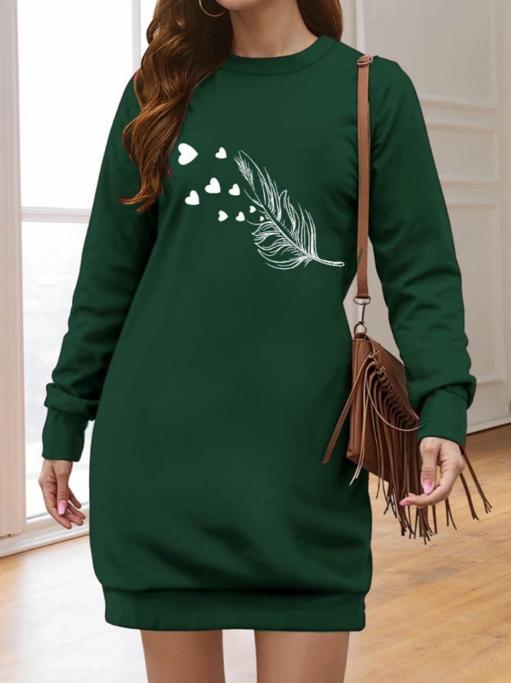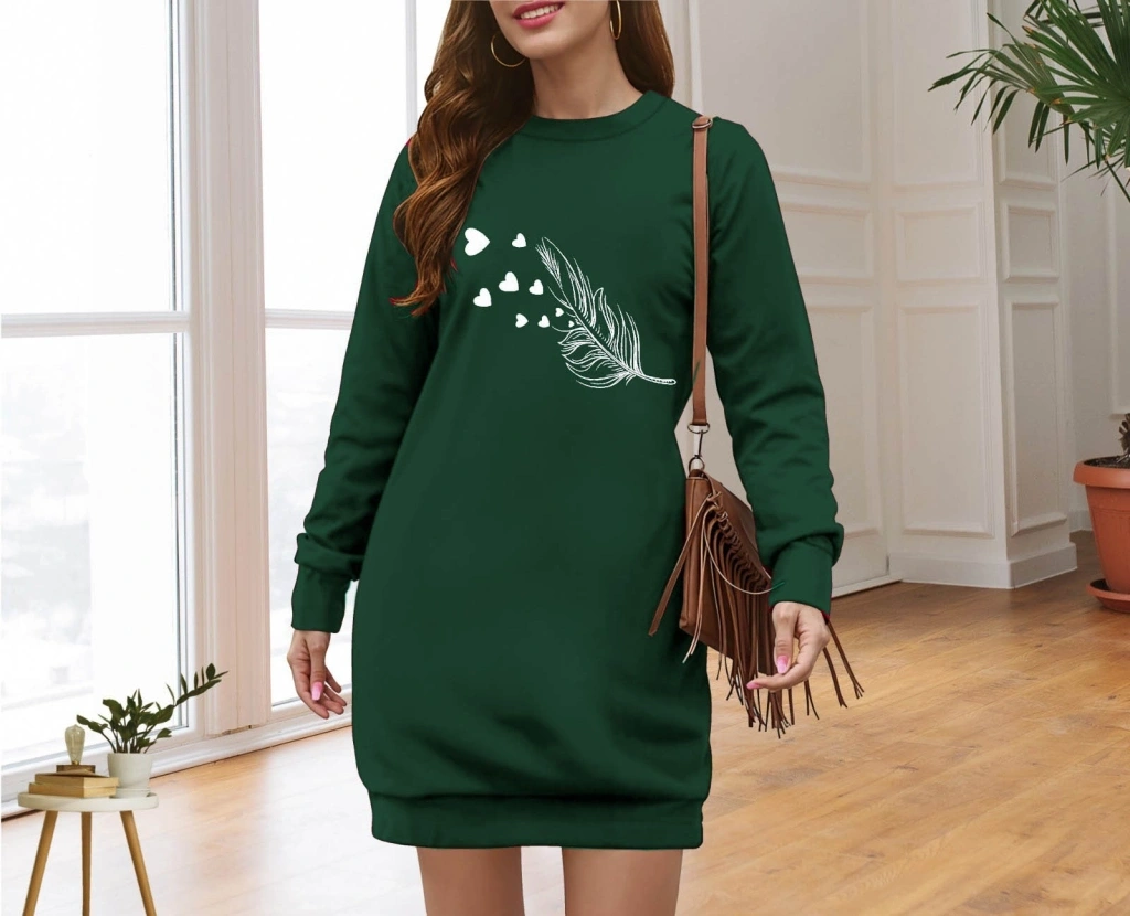 Kadın Uzun Kollu Bisiklet Yaka Desenli Viskon Iki Iplik Elbise
