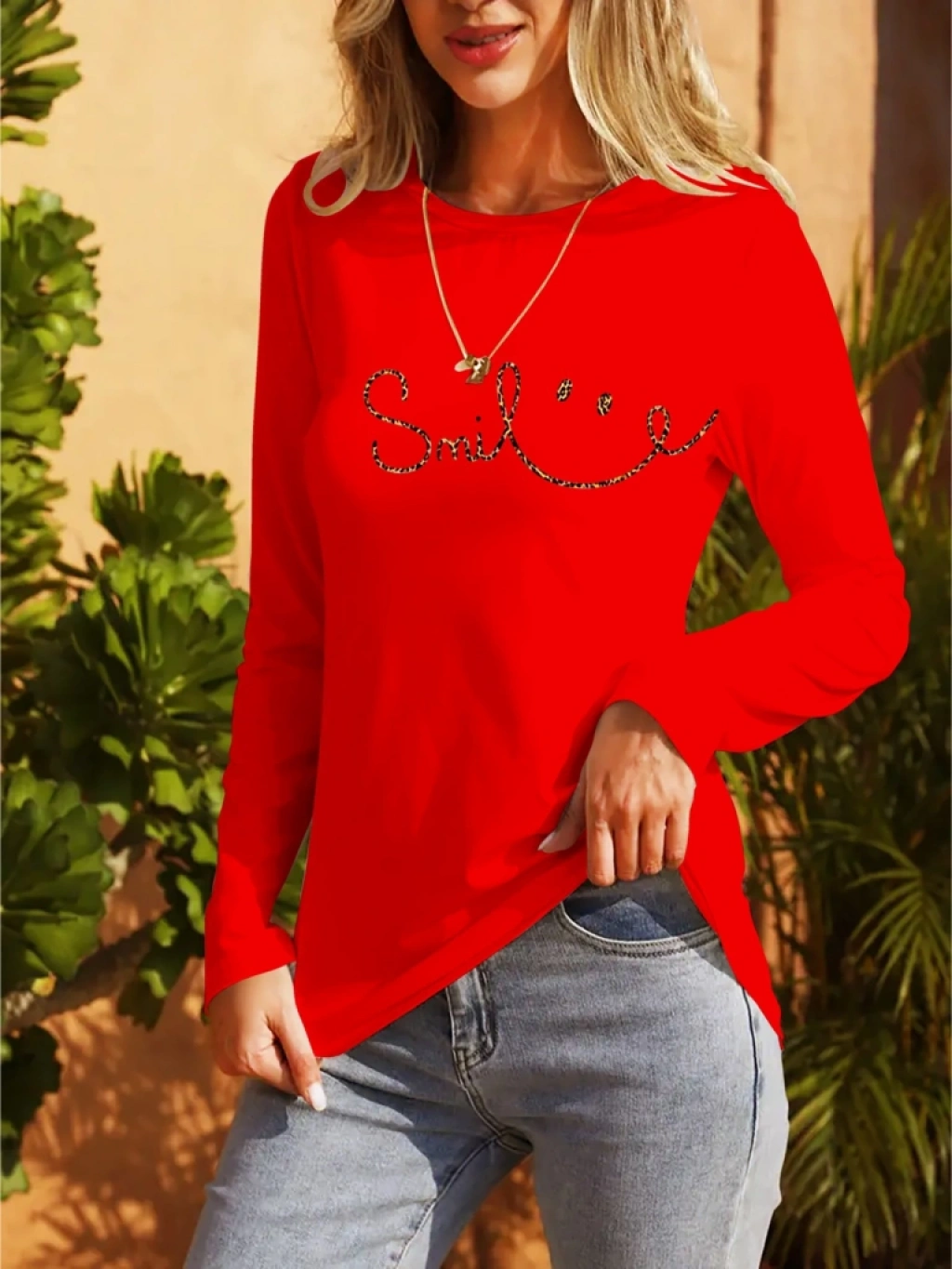 Kadın Uzun Kollu Bisiklet Yaka Gülümseyen Surat Desenli Viskon Bluz