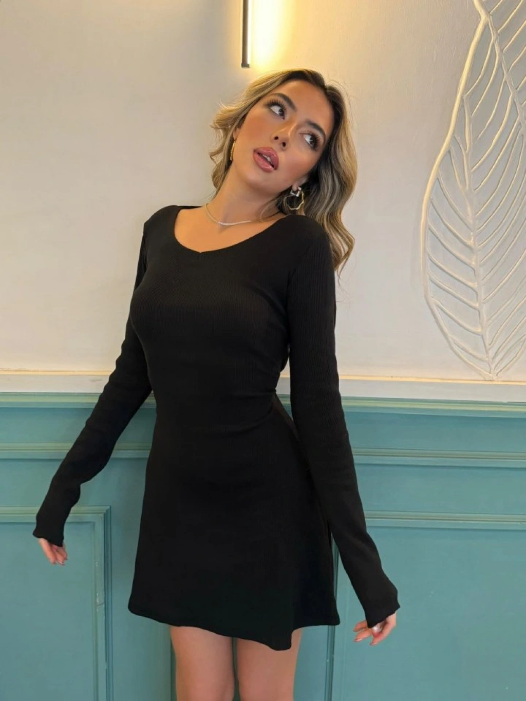 Kadın Uzun Kollu Bisiklet Yaka Kısa Kaşkorse Elbise