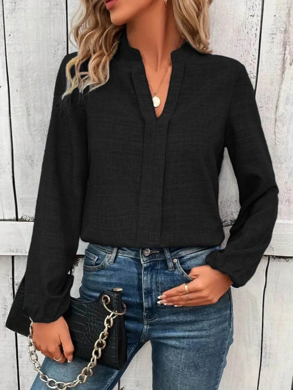 Kadın Uzun Kollu Hakim Yaka Bluz