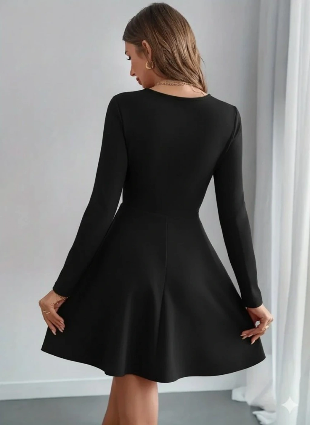 Kadın Uzun Kollu Inci Yakalı Kısa Ithal Krep Elbise