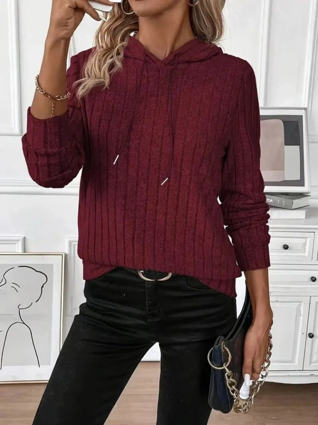 Kadın Uzun Kollu Kapşonlu Bağcıklı şardonlu Kaşkorse Bluz