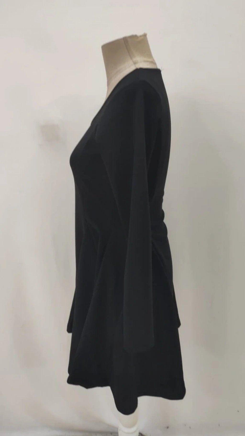 Kadın Uzun Kollu Kare Yakalı Mini Ithal Krep Elbise