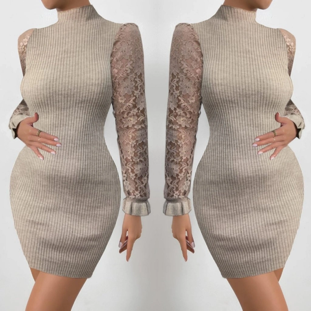Kadın Uzun Kollu Kollar Tül Detay Triko Mini Boy Elbise