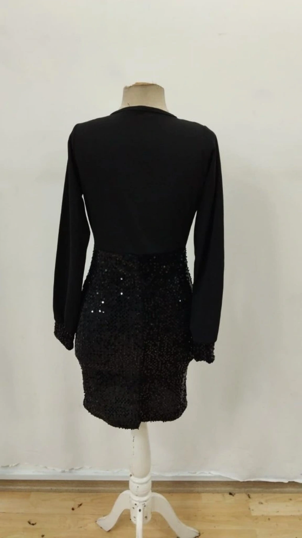 Kadın Uzun Kollu Kruvaze Yakalı üst Ithal Krep Alt Pulpayetli Mini Ithal Krep Elbise