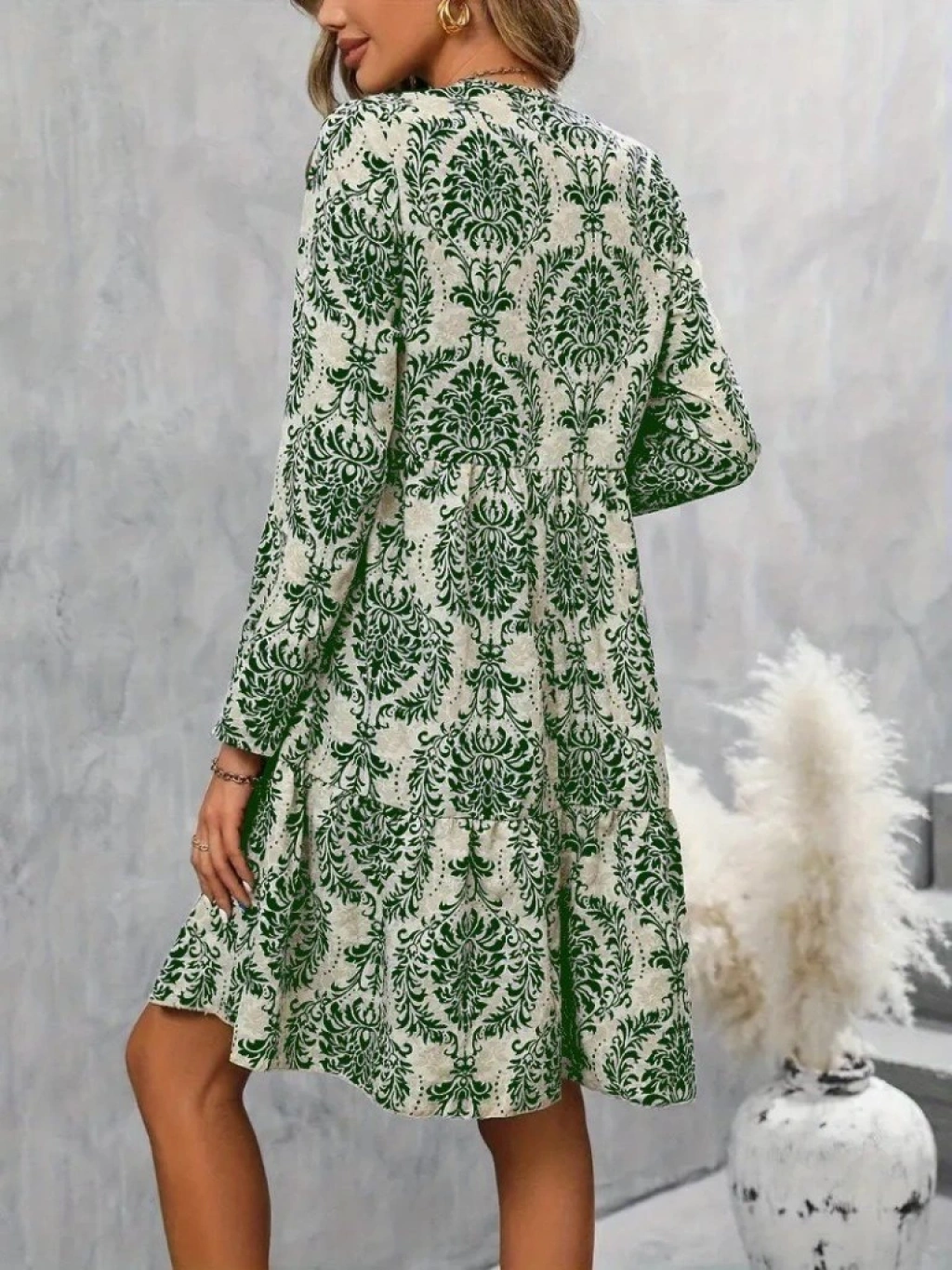 Kadın Uzun Kollu V Yakalı Fırfırlı Mini Süprem Elbise