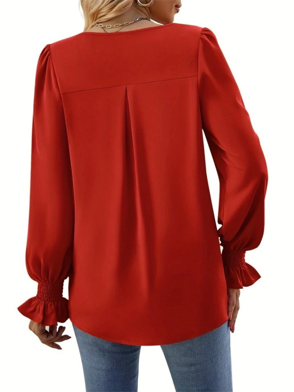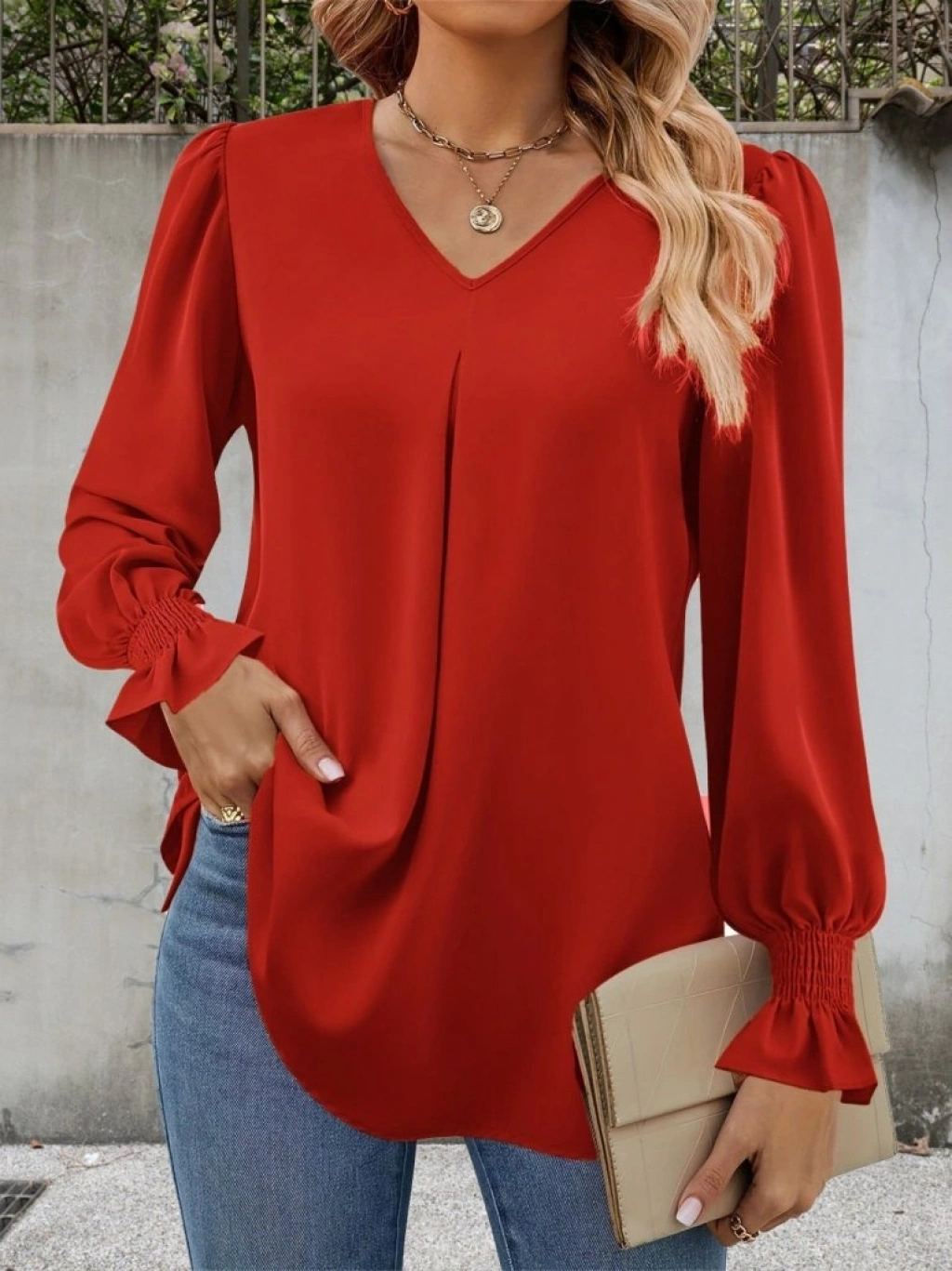 Kadın Uzun Kollu V Yakalı Salaş Ithal Krep Bluz