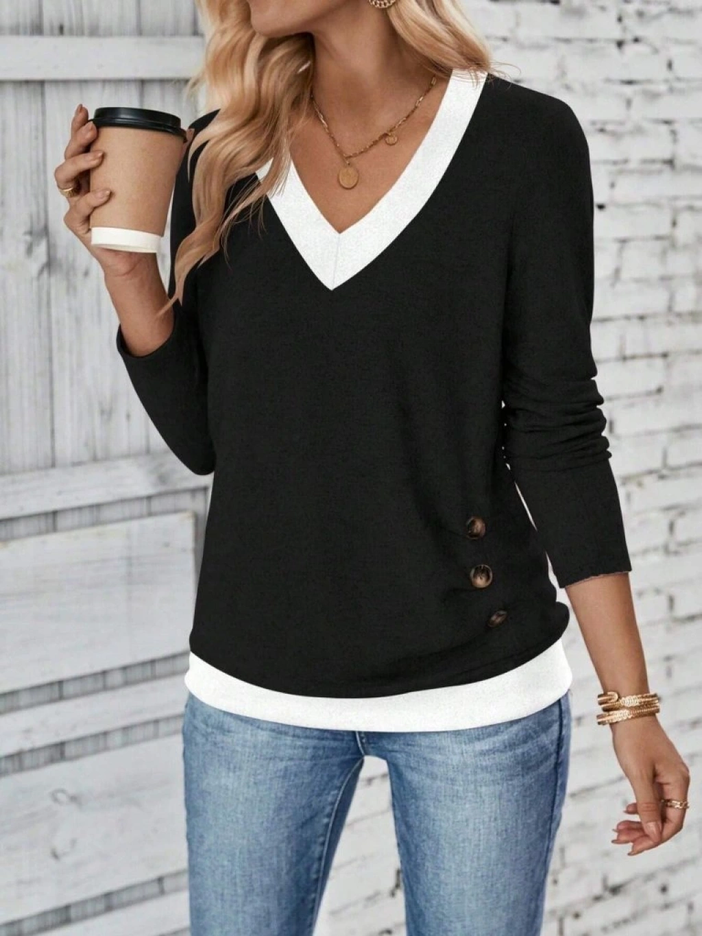 Kadın Uzun Kollu V Yakalı Yandan Düğmeli Yün Viskon Bluz