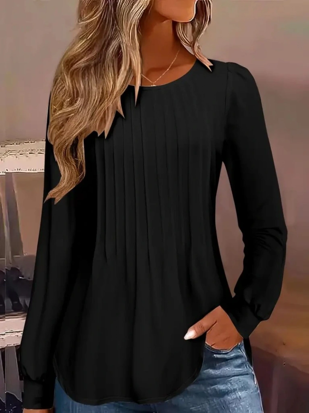 Kadın Uzun Kollu Yuvarlak Yaka Nervürlü Bluz