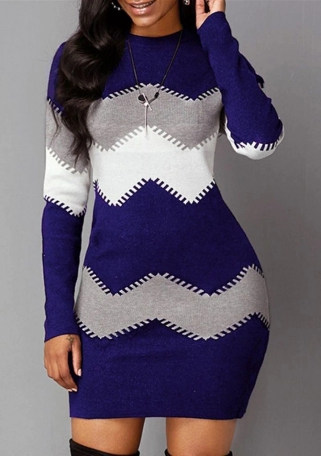 Kadın Uzun Kollu Zigzag Desen Triko Elbise