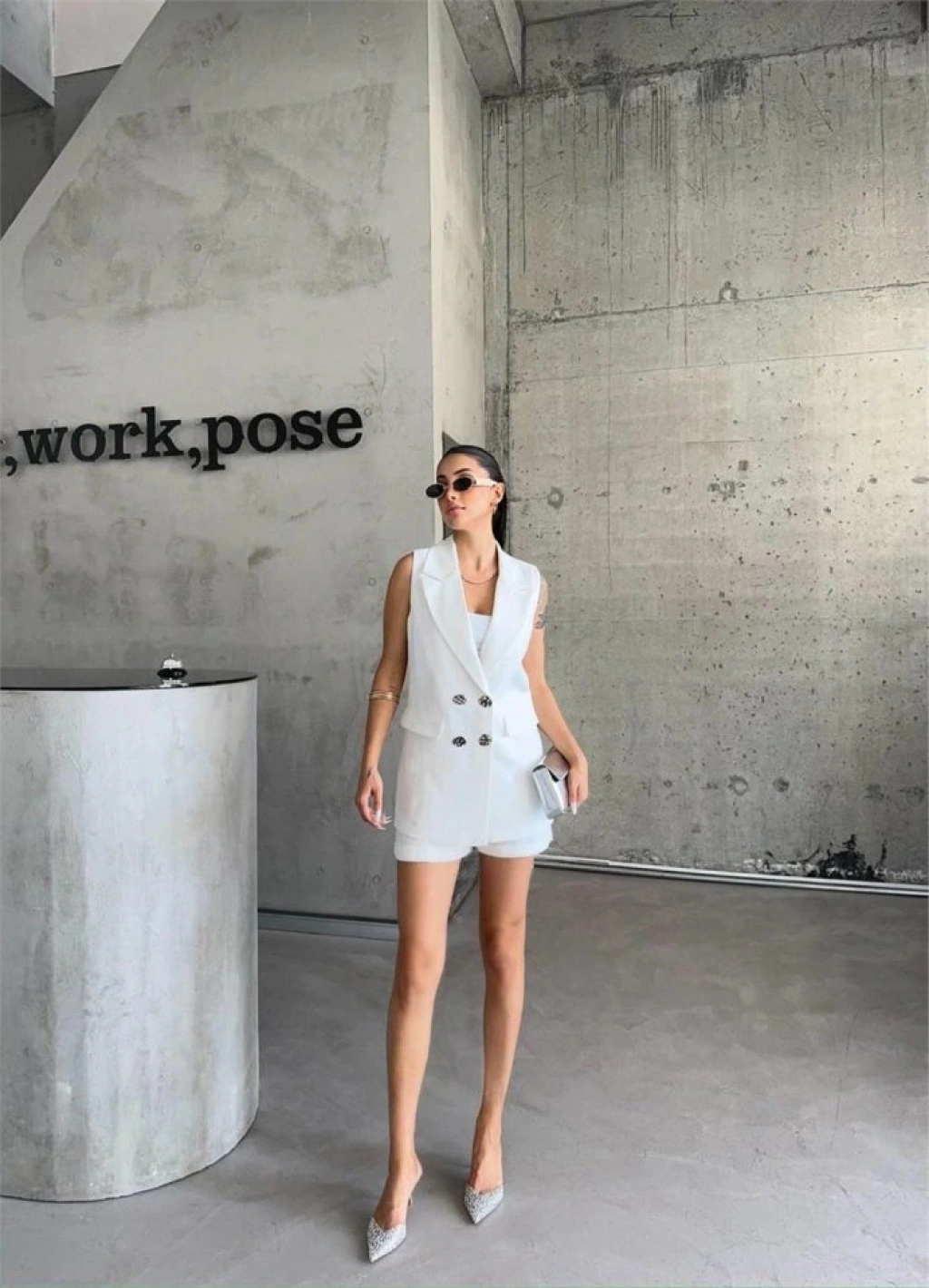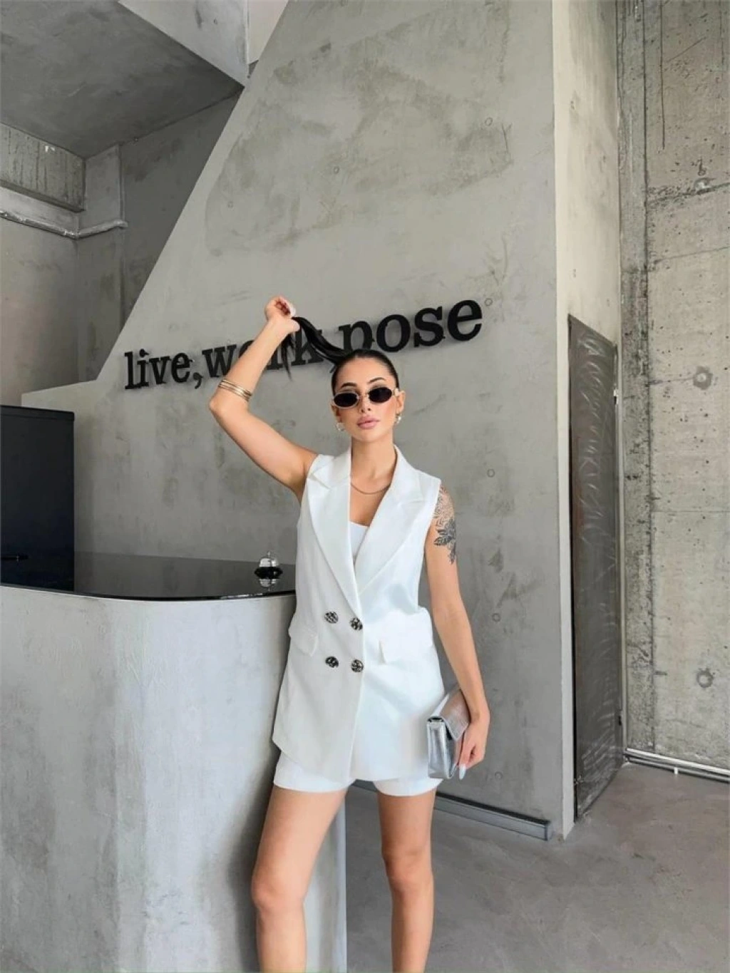 KETEN YELEK - ŞORT TAKIM - Beyaz